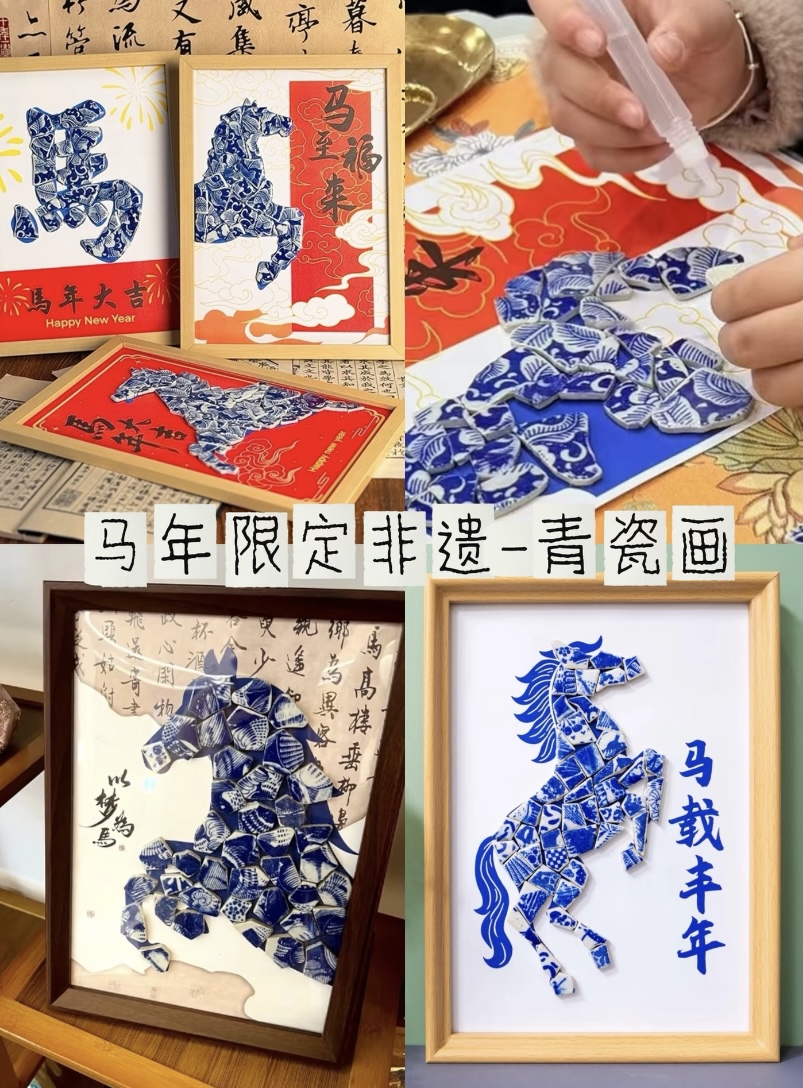 碎片成画,“马”上吉祥——青花拼贴挑战